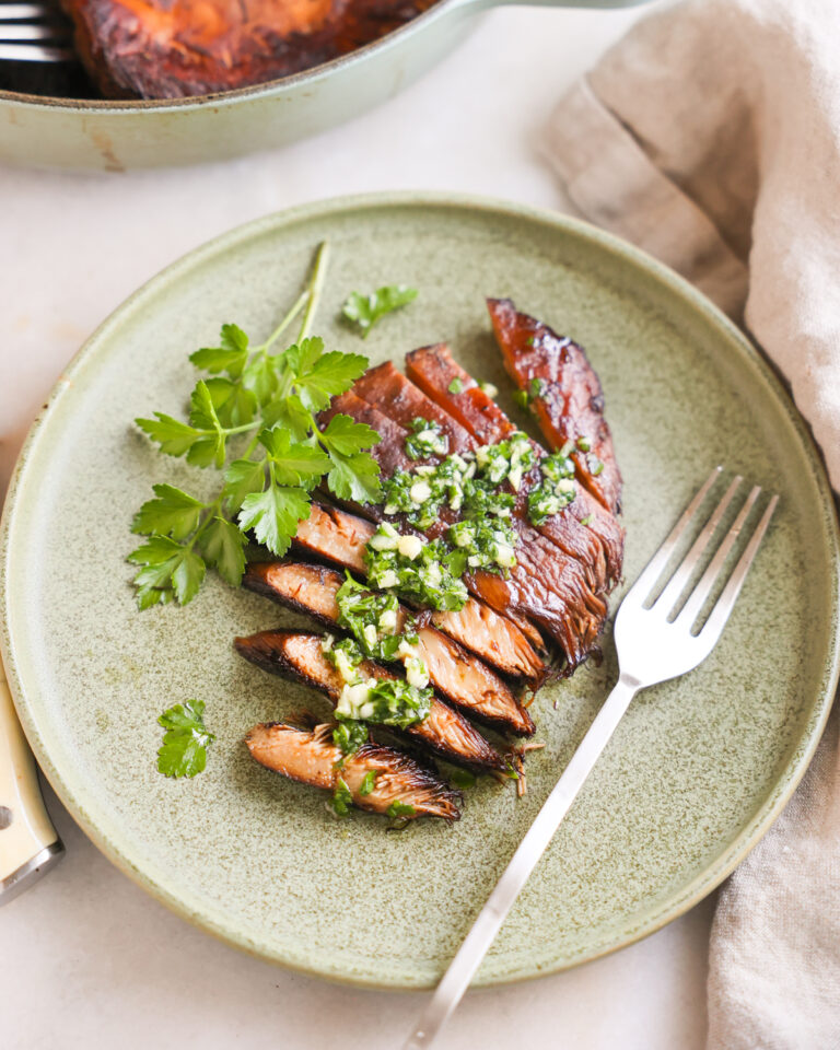 Juicy, tender, and boldly savory, this Lion’s Mane Steak is an elegant yet easy plant-based main. Thick mushroom slices are marinated, pressed, and slowly seared until golden and meaty, then finished with bright Italian gremolata. Simple, impressive, and bursting with flavor!This recipe is adapted from Derek Sarno’s lion’s mane steak method.