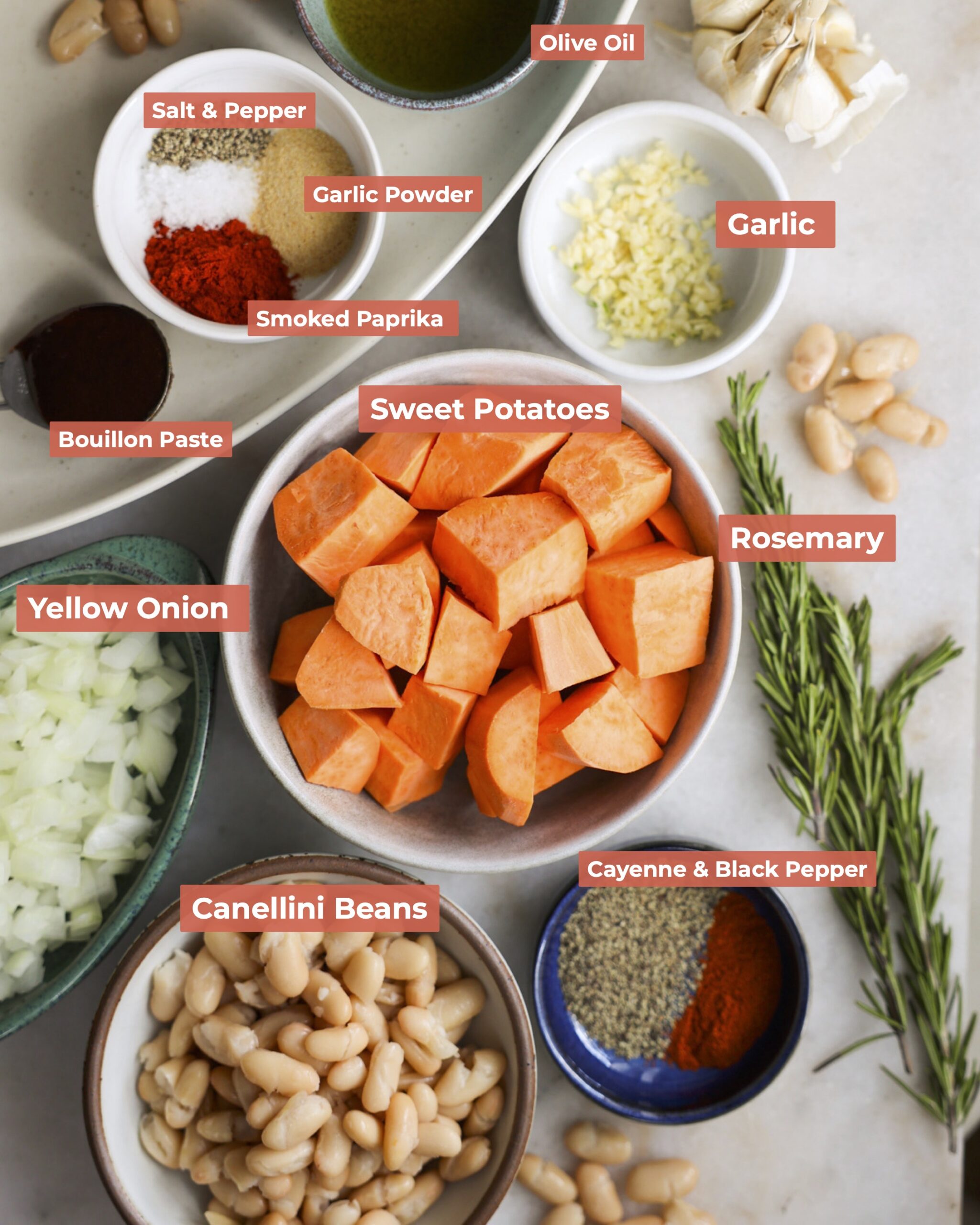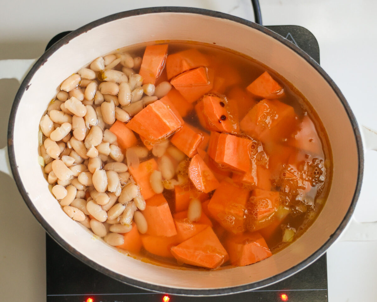 White Beans: This is the secret ingredient in this healthy sweet potato soup, ensuring that it is creamy and rich while still plant-based and healthy! Use canned or homecooked cannellini or navy beans (check out this recipe on How To Cook Beans). If using canned, drain and rinse them before using.
